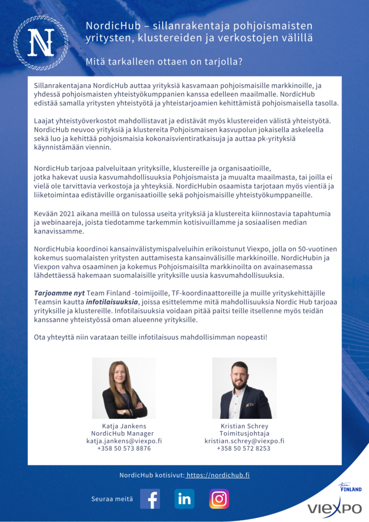 NordicHub – sillanrakentaja pohjoismaisten yritysten, klustereiden ja verkostojen välillä